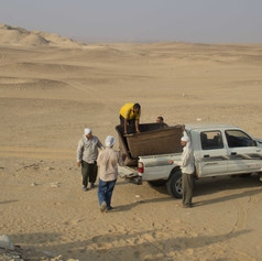 La fouille a été ouverte au sud de la pyramide d'Ânkhnespépy II : le système de wagonnets "Decauville" (servant à transporter le sable aux limites du site) a été mis en place par nos ouvriers, puis les premiers coups de pioches ont été donnés.